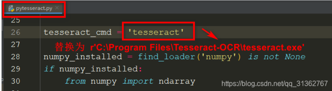 下载完后在终端下载pytesseract库,并修改参数,地址为你安装的地址